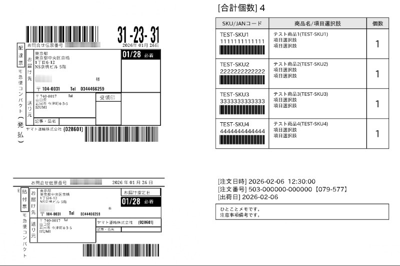 配送ラベルの空きスペースに、注文内容(商品名や個数)を印字できるようになりました。