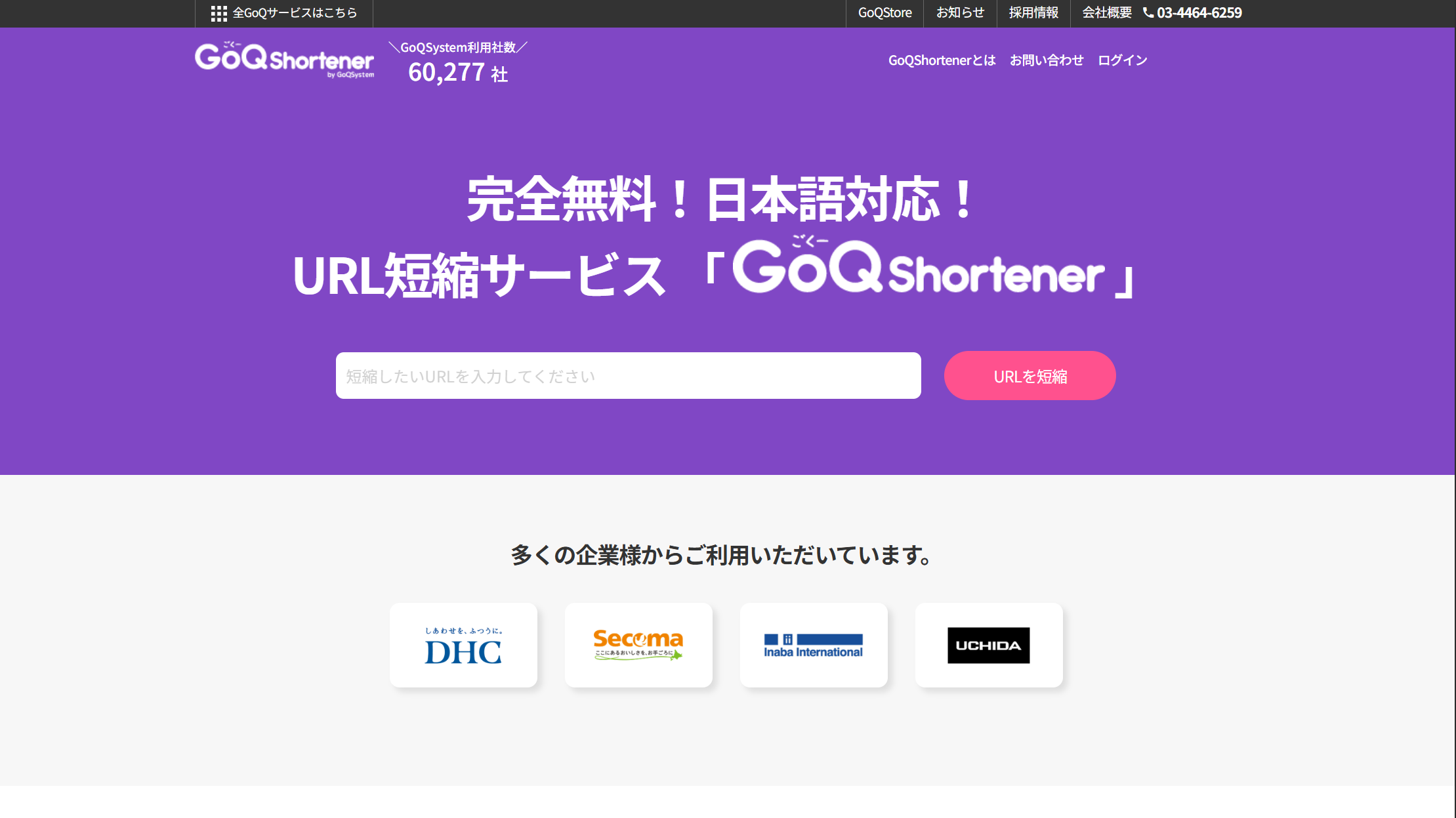 GoQShortenerは、通販DXツールなどを手がける国内企業が運営しており、日本のビジネス習慣に合わせたUIとサポート体制を整えているのが最大の特徴です。