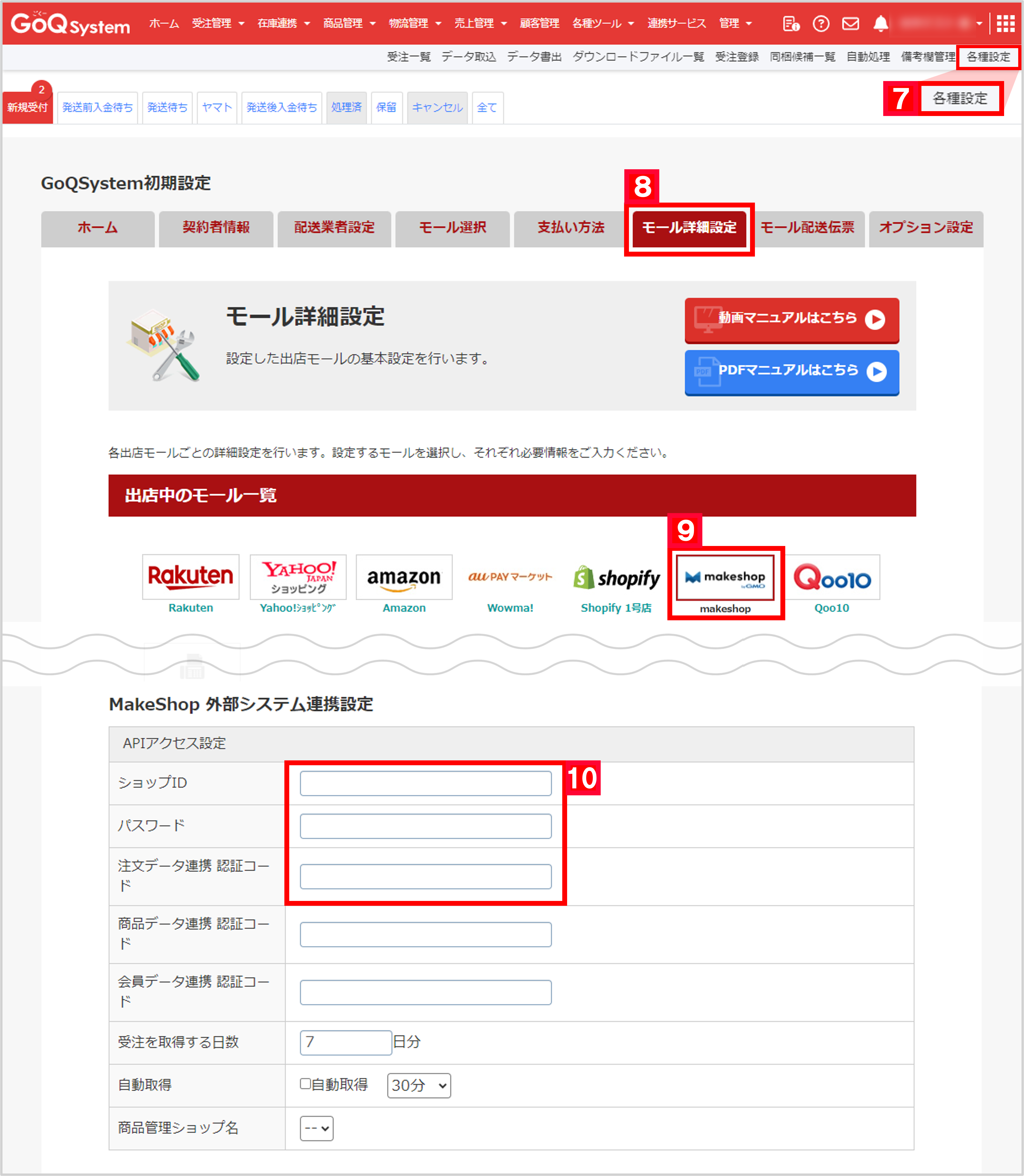 ※受注APIの設定には弊社よりmakeshopへの申請が必要となります。