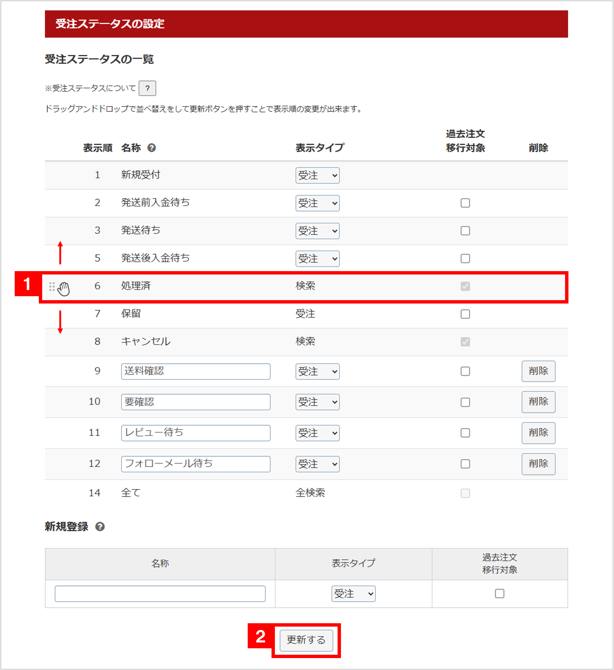 ■受注ステータス新規作成方法