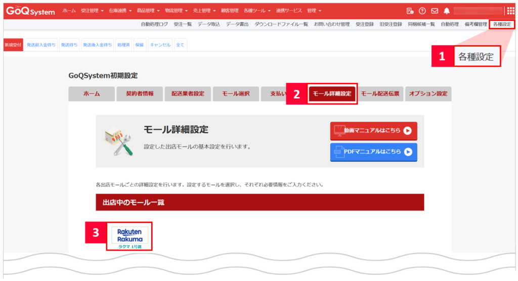 【2】[モール詳細設定]をクリックします。