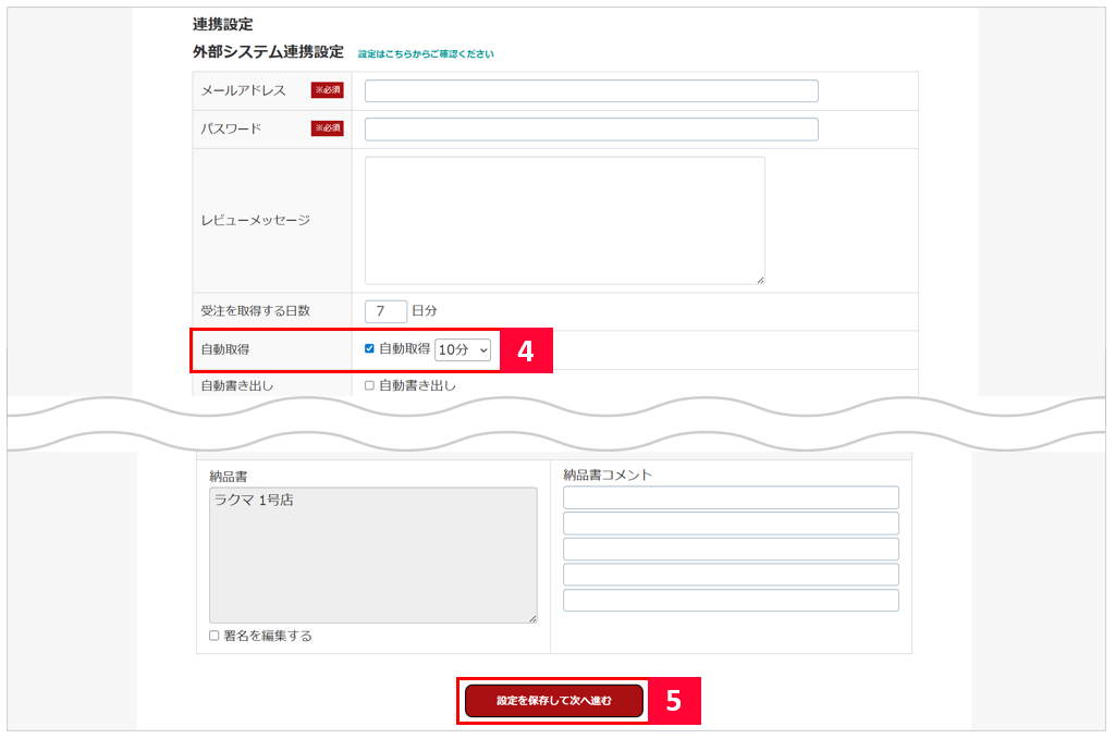 【4】外部システム連携設定より、自動取得にチェックを付けます。