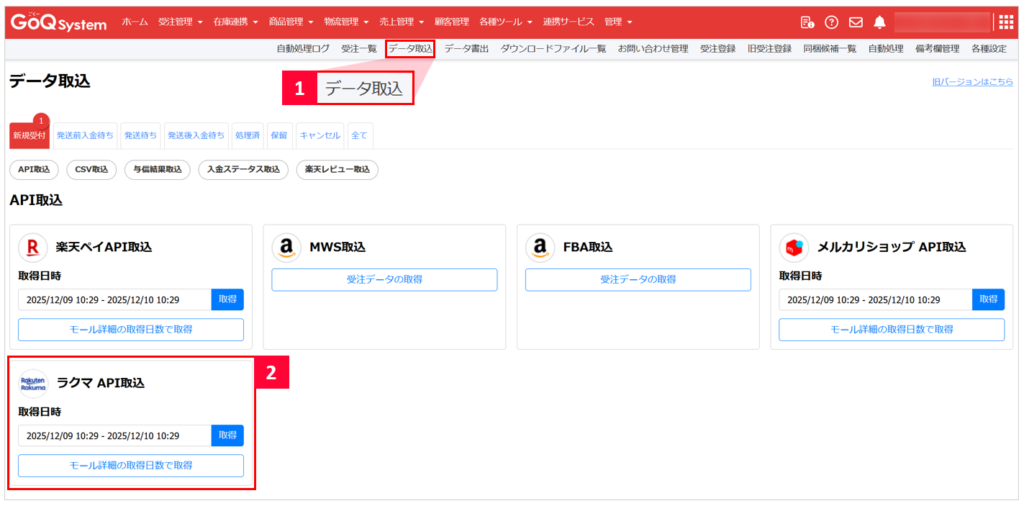 ■ラクマからGoQSystemへの注文データ取得方法