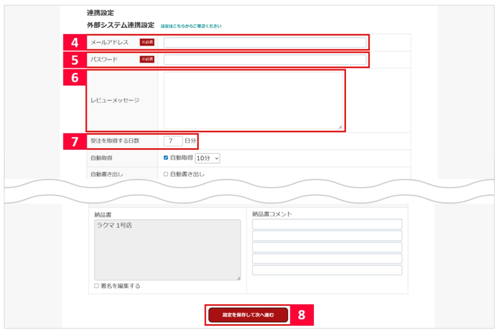 【7】ラクマから受注を取得する際の取得対象期間(日数)を設定します。