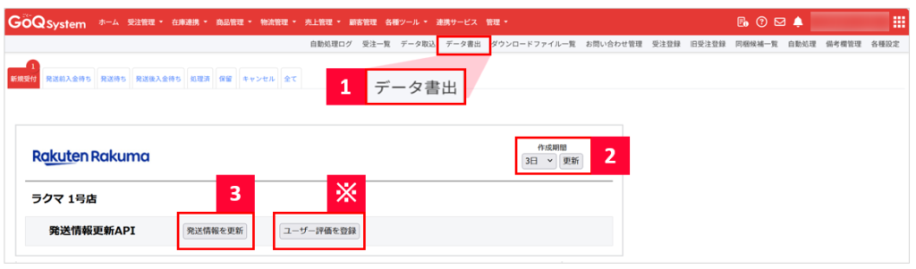 ■GoQSytemからラクマへの注文データ同期方法