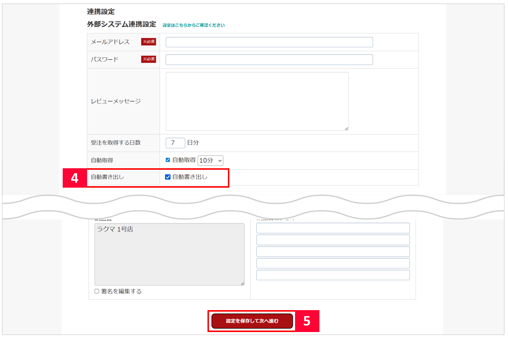 【4】外部システム連携設定内、[自動書き出し]にチェックをつけて下さい。