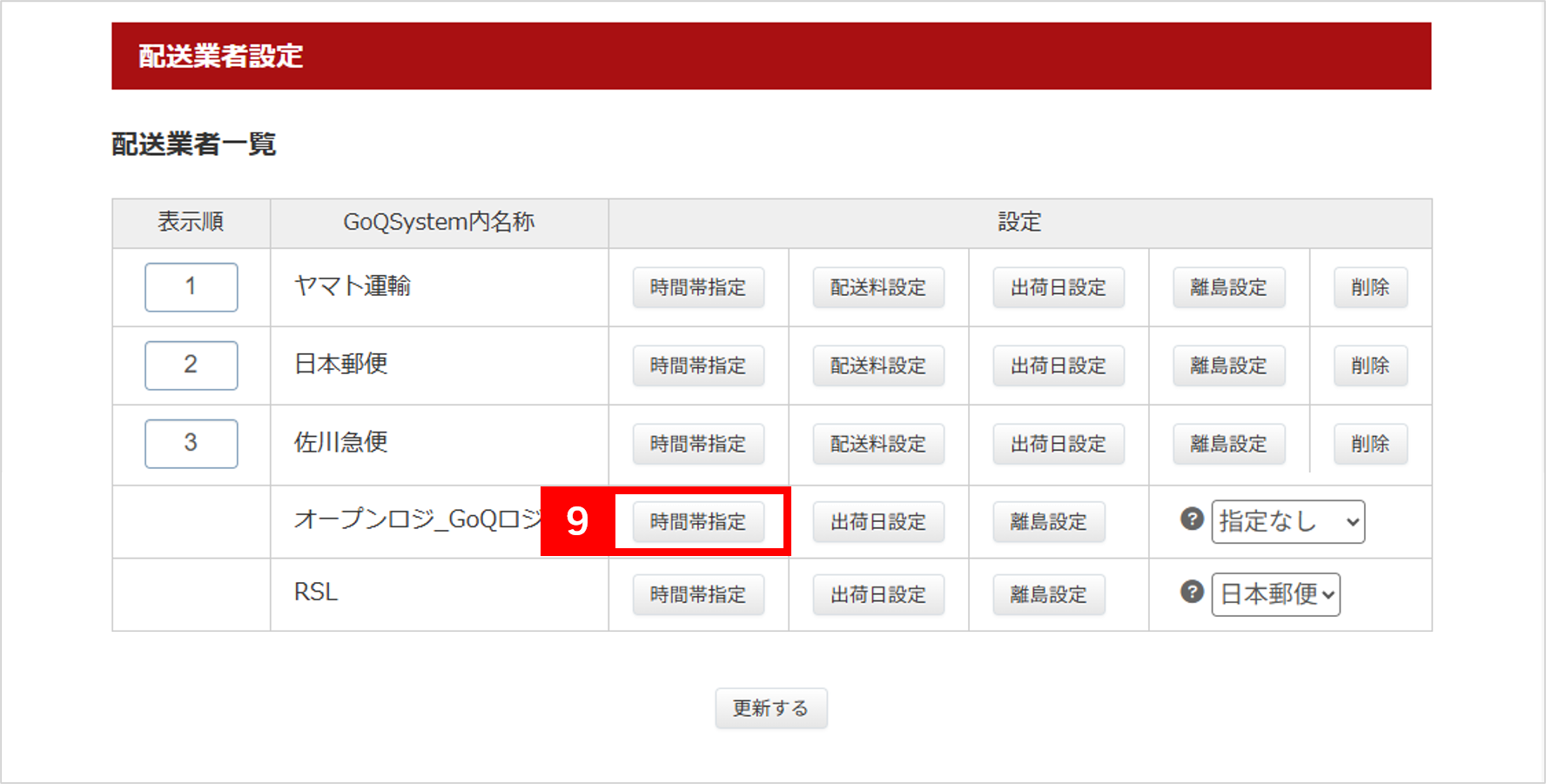 配送業者の追加と時間帯指定の紐づけを行います 。