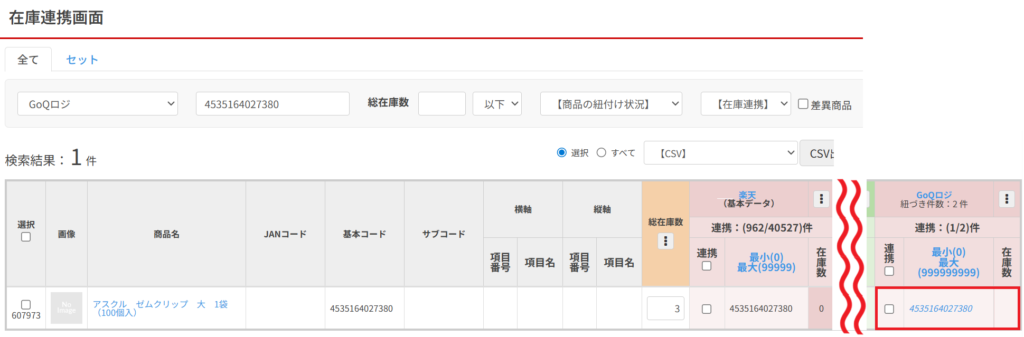 GoQロジに登録した商品と、在庫連携に登録した商品を連携します。