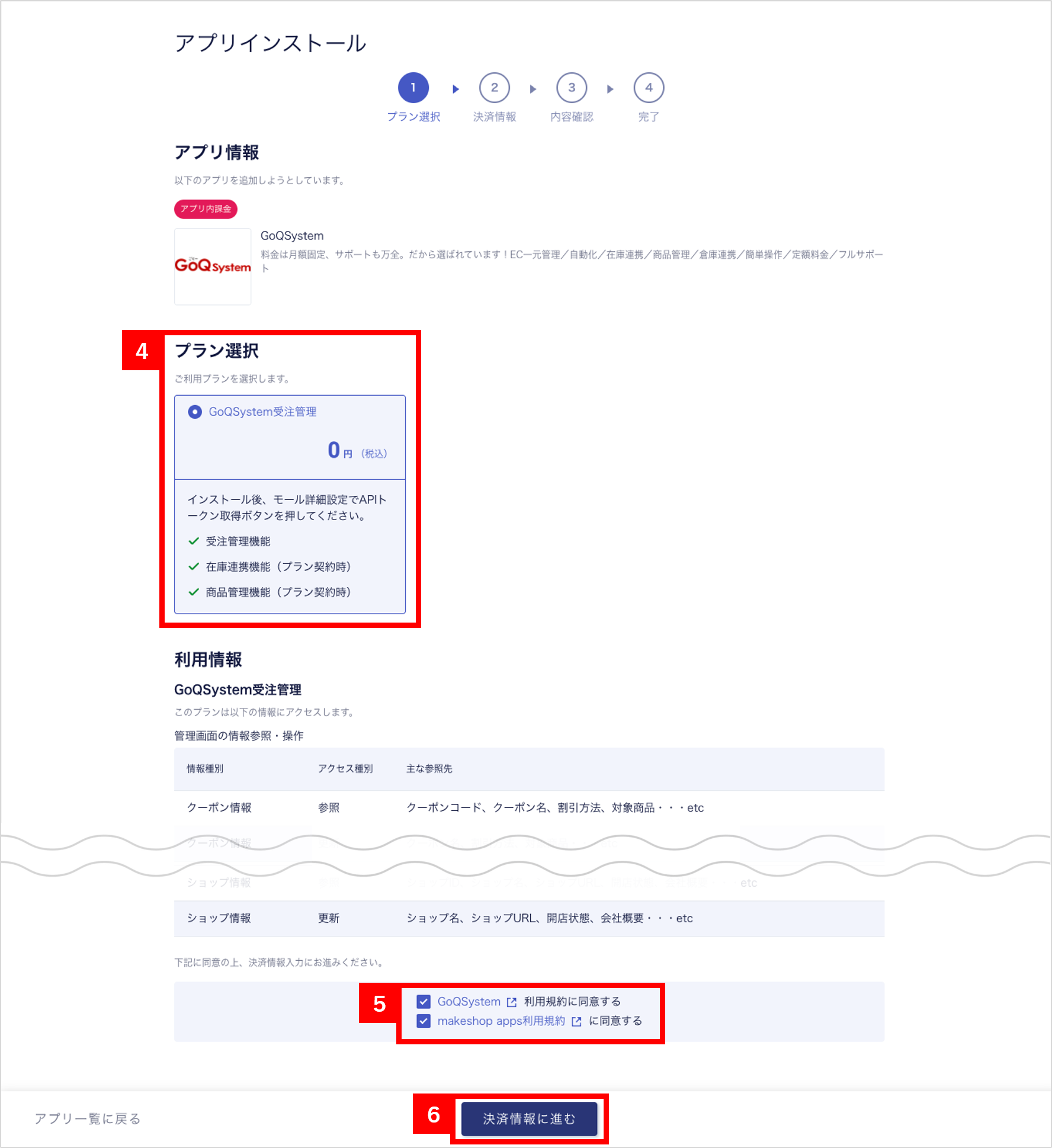 【6】[決済情報に進む]をクリックします。