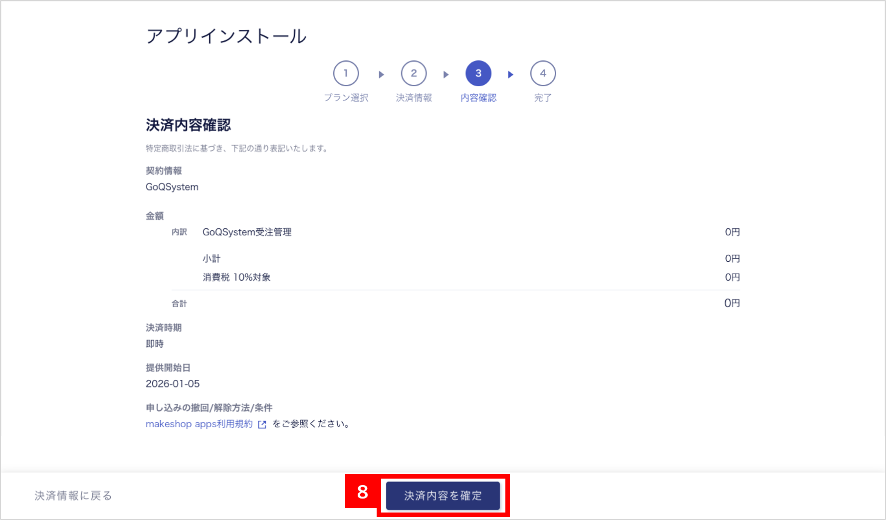 【8】[決済内容を確定]をクリックします。