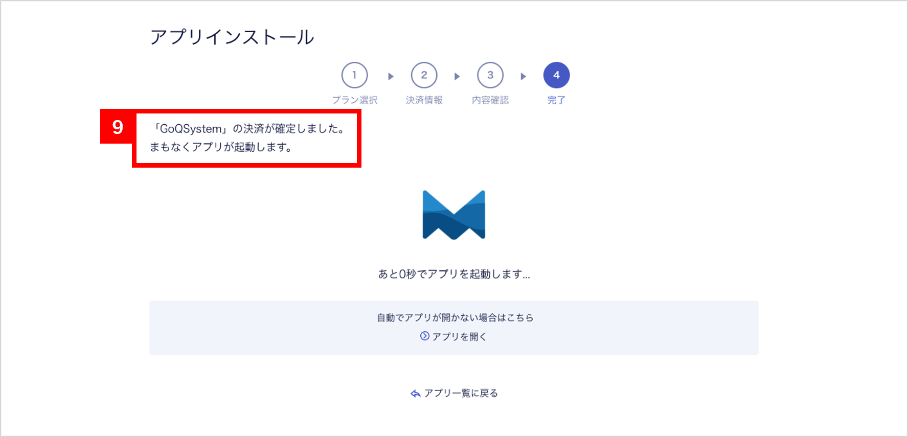【9】アプリのインストールが完了し、GoQSystemのモール詳細設定画面が開きます。