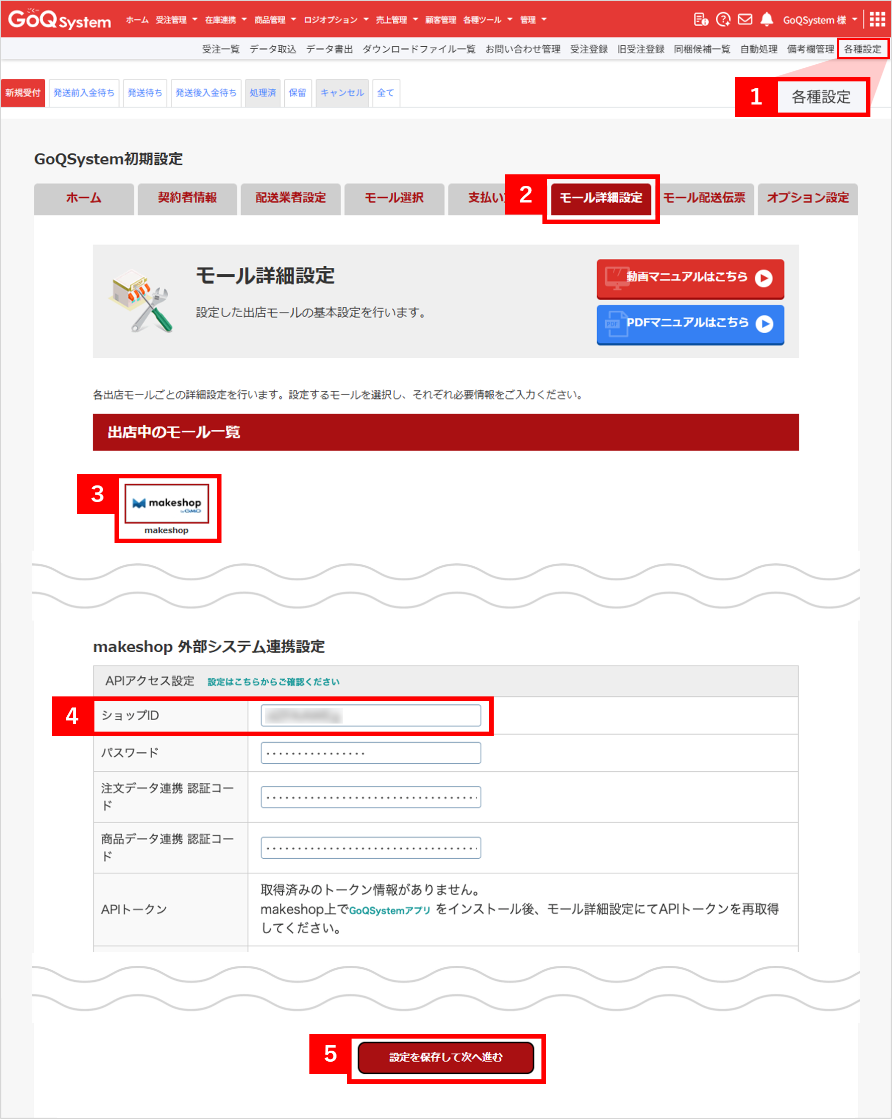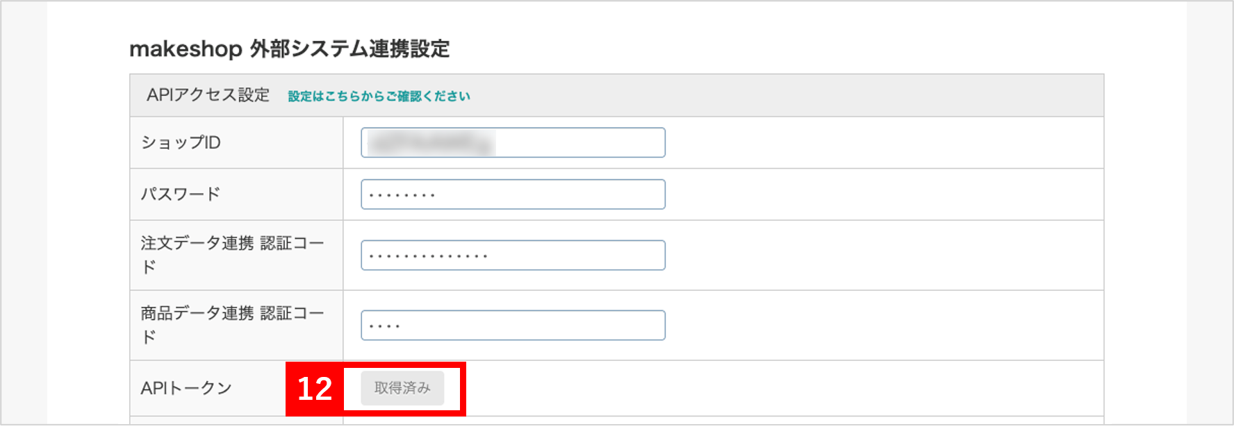 【4】makeshop外部システム連携設定に「ショップID」を入力します。