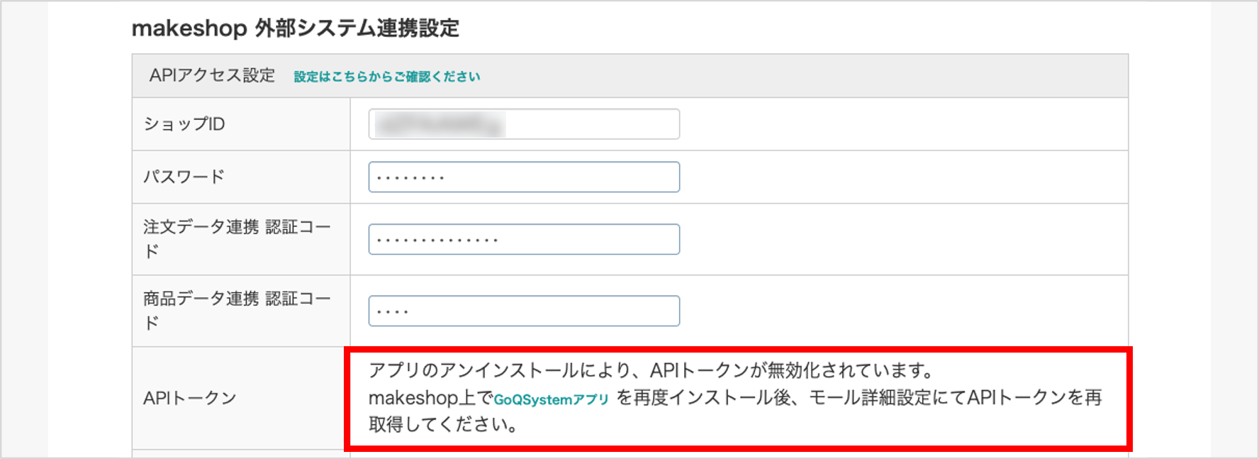 しかし、makeshop上でアプリがアンインストールされると、APIトークンは無効化されます。