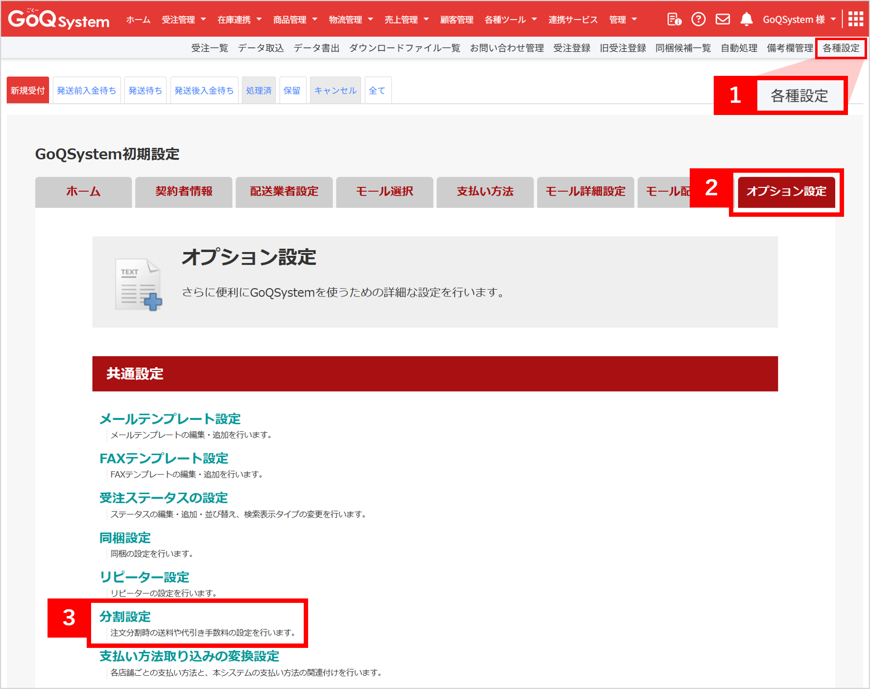※GoQSystem上でのみの分割となり、モール側では分割されませんのでご注意下さい。