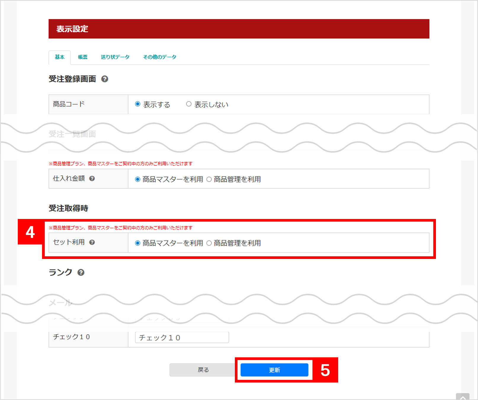 【4】[受注取得時>セット利用]を「商品マスターを利用」にします。