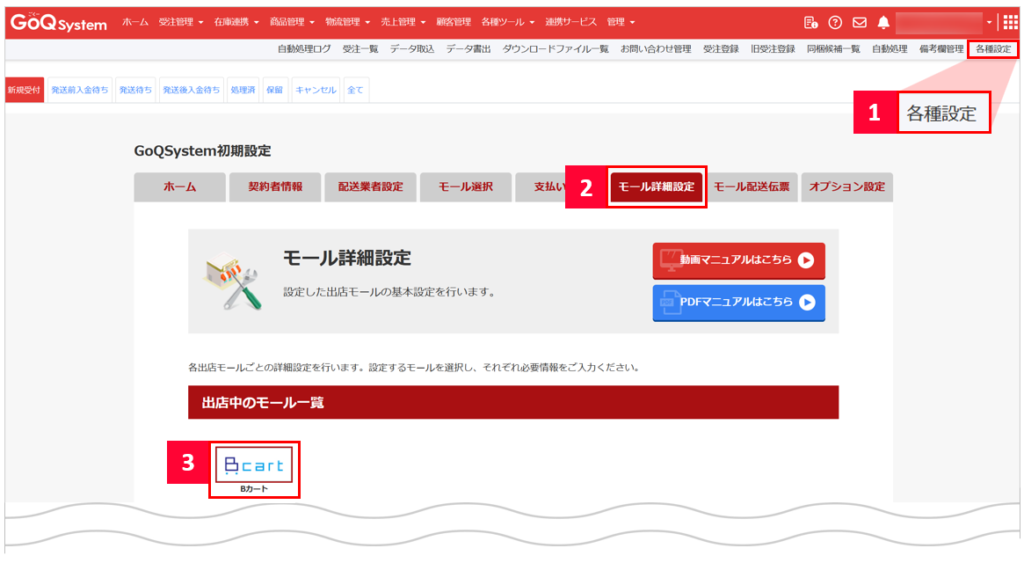 【8】GoQSystem上、Bカートのモール詳細設定画面に戻りますので、