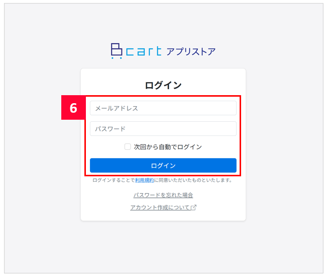 【6】Bカート側にログインします。