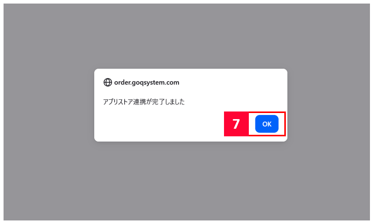 【7】「アプリストア連携が完了しました」というメッセージが表示されたら[OK]をクリックします。