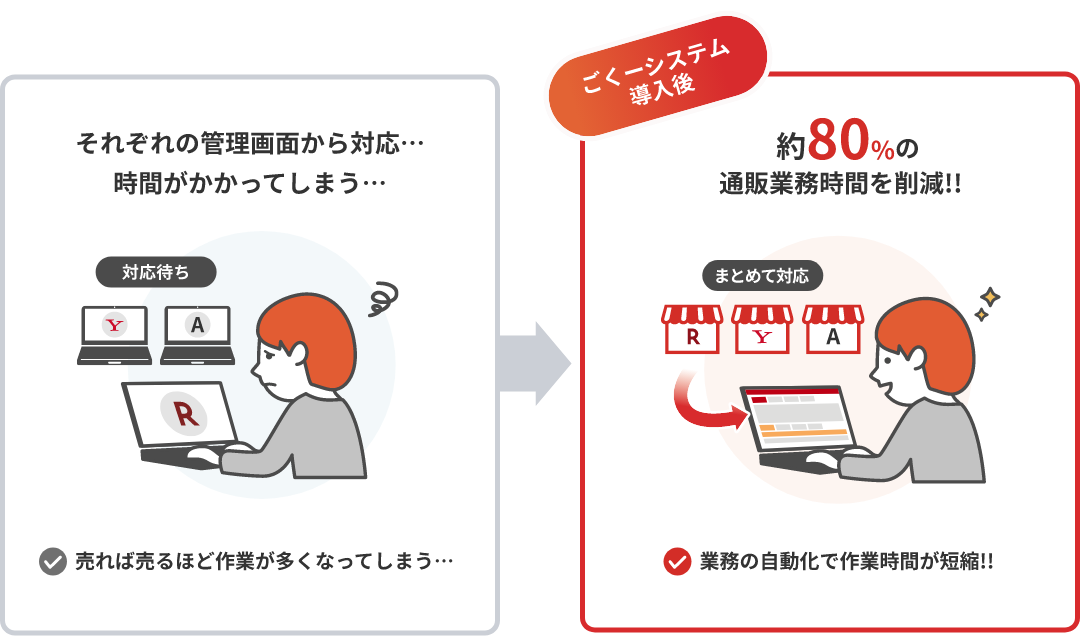 楽天、Yahoo!など複数店舗の通販業務をまとめて管理・運用
